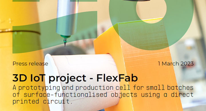 Région Auvergne-Rhône-Alpes, a créé une cellule de prototypage et de production par petits lots pour les objets fonctionnalisés en surface à l’aide d’un circuit imprimé direct. Les pistes conductrices imprimées permettent d’intégrer les fonctions électroniques directement sur la surface de l’objet sans transférer systématiquement une ou plusieurs cartes électroniques 2D classiques et en remplaçant les fils électriques entre les composants par des pistes conductrices imprimées.
